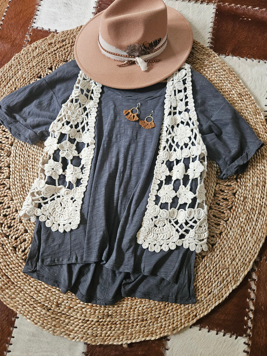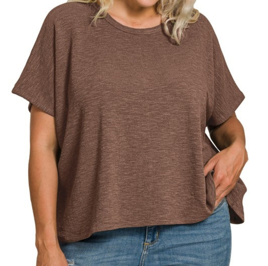 Washed Ribbed Short Sleeve Top