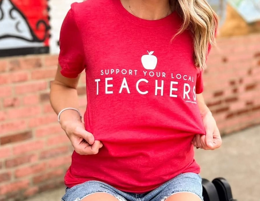 Red | "Support Your Local Teachers" White Graphic | Bella Canvas Tee | True to Size